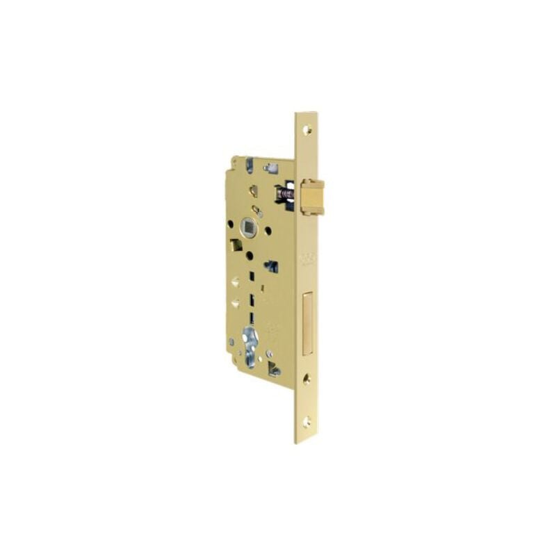 Serratura legno infilare 80852 agb B.q ottonato f.mm 22 f.sagom m2+scr+q8 e.mm 40 per cilindro sagomato. con scrocco brevettato co-stampato autolubrificante e catenaccio. chiusura con catenaccio a 2 mandate (1 mandata per le misure e mm. 20-25-30). quadro maniglia mm. 8. frontale con bordo quadro da mm. 22x212. altezza scatola mm. 170.