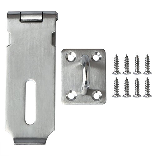 Serratura a lucchetto per porte, in acciaio inox, cerniera e occhiello con viti, argento