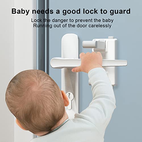 1 serratura per maniglia della porta per bambini e animali domestici, bianca, serratura di sicurezza per bambini con adesivo posteriore, serratura per porte e finestre