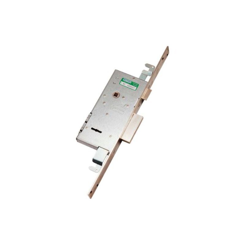 Serratura metallo infilare 40721 mottura B.q zinc f.mm 25 dm e.mm 47 dx/sx a doppia mappa. chiusura triplice, con catenaccio a 2 mandate, corsa mm. 36, boccole filettate m8 per il fissaggio aste, corsa asta mm. 20. borchia interna in acciaio. frontale in acciaio zincato con bordo quadro da mm. 25x260. altezza scatola mm. 80. in dotazione: 2 chiavi.