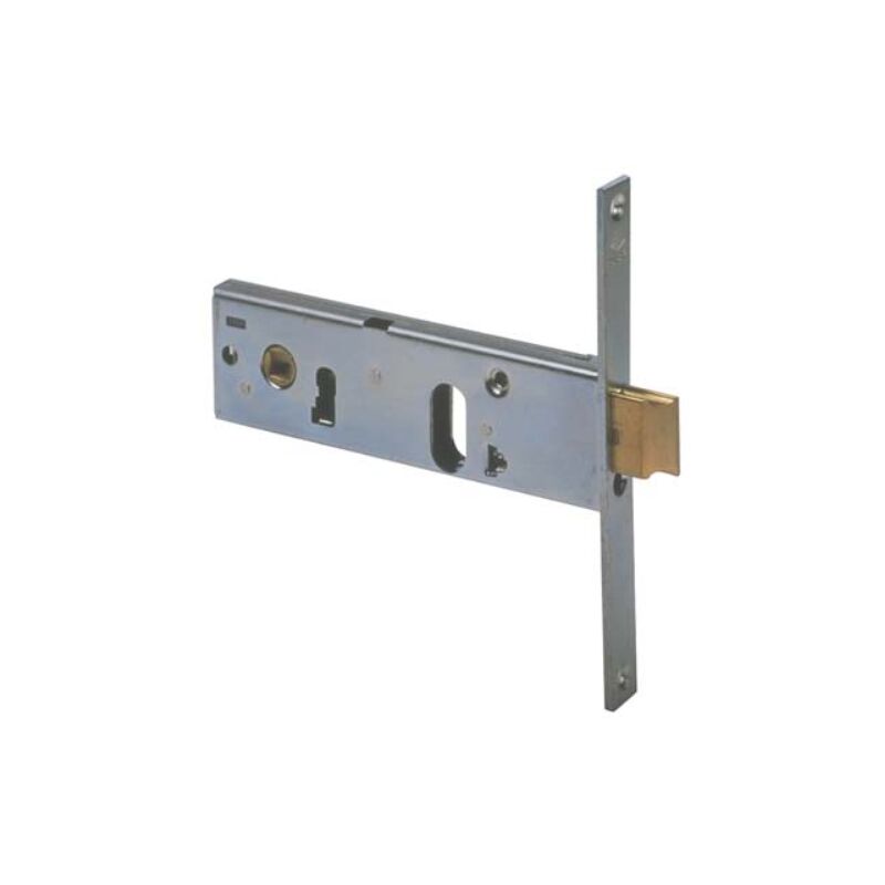 Serratura metallo infilare 44151 cisa B.q zinc f.mm 20 f.ovale +scr h.mm 44 e.mm 80 m2 per cilindro ovale. scrocco reversibile con catenaccio incorporato. quadro maniglia mm. 8. frontale in acciaio zincato con bordo quadro da mm. 20x160. altezza scatola mm. 44.