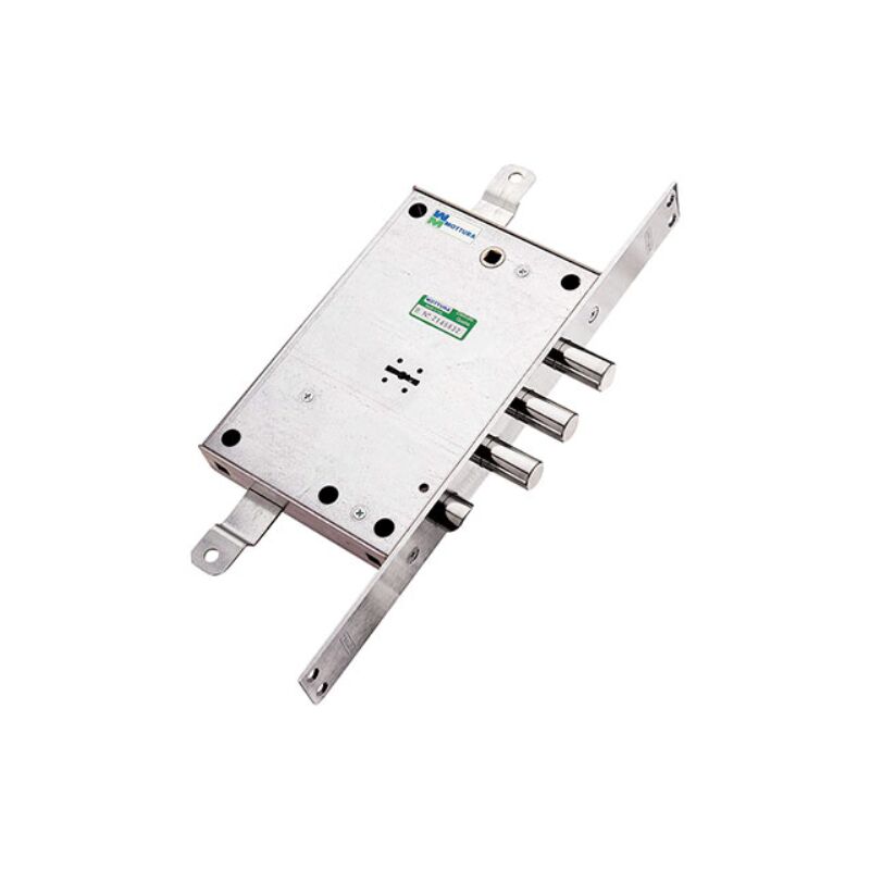 Serratura metallo infilare 52771 mottura Dm m4 tripl+scr ip.mm 37 e.mm 63 dx/sx a doppia mappa. scrocco azionabile da chiave o maniglia. chiusura triplice con catenaccio a pistoni e 4 mandate, corsa mm. 40, e predisposizione per fissaggio aste, corsa mm. 20. quadro maniglia mm. 8, interasse mm. 85. frontale con bordi quadri da mm. 35x356. scatola mm. 136x206. in acciaio zincato.