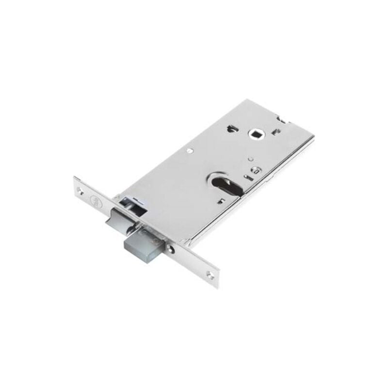 Per cilindro ovale. Scrocco reversibile. Chiusura con catenaccio a 3 mandate. Quadro maniglia Mm. 8. Frontale in acciaio inox con bordo quadro Mm. 22x155. Altezza scatola Mm. 78. In dotazione: viti di fissaggio per cilindro.