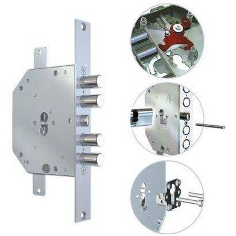 Serratura metallo infilare 2151 pen bloc/fl cr Serratura metallo infilare 2151 pen bloc/fl cr f.sagom m2 tripl+scr ip.mm 28 e.mm 60 dx Caratteristiche Tecniche: - Serratura in metallo infilare 2151 con blocco penne, finitura cromata, fissaggio sagomato, protezione anti - scasso, dimensioni 28x60 mm, per porta destra. Tecnologia tripla sicurezza e resistenza agli urti.