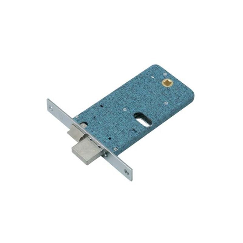 Per cilindro ovale. Scrocco reversibile. Chiusura con catenaccio a 3 mandate. Quadro maniglia Mm. 8. Frontale in acciaio nichelato e cromato con bordo quadro da Mm. 16x160. Altezza scatola Mm. 78. In dotazione: viti di fissaggio per cilindro.