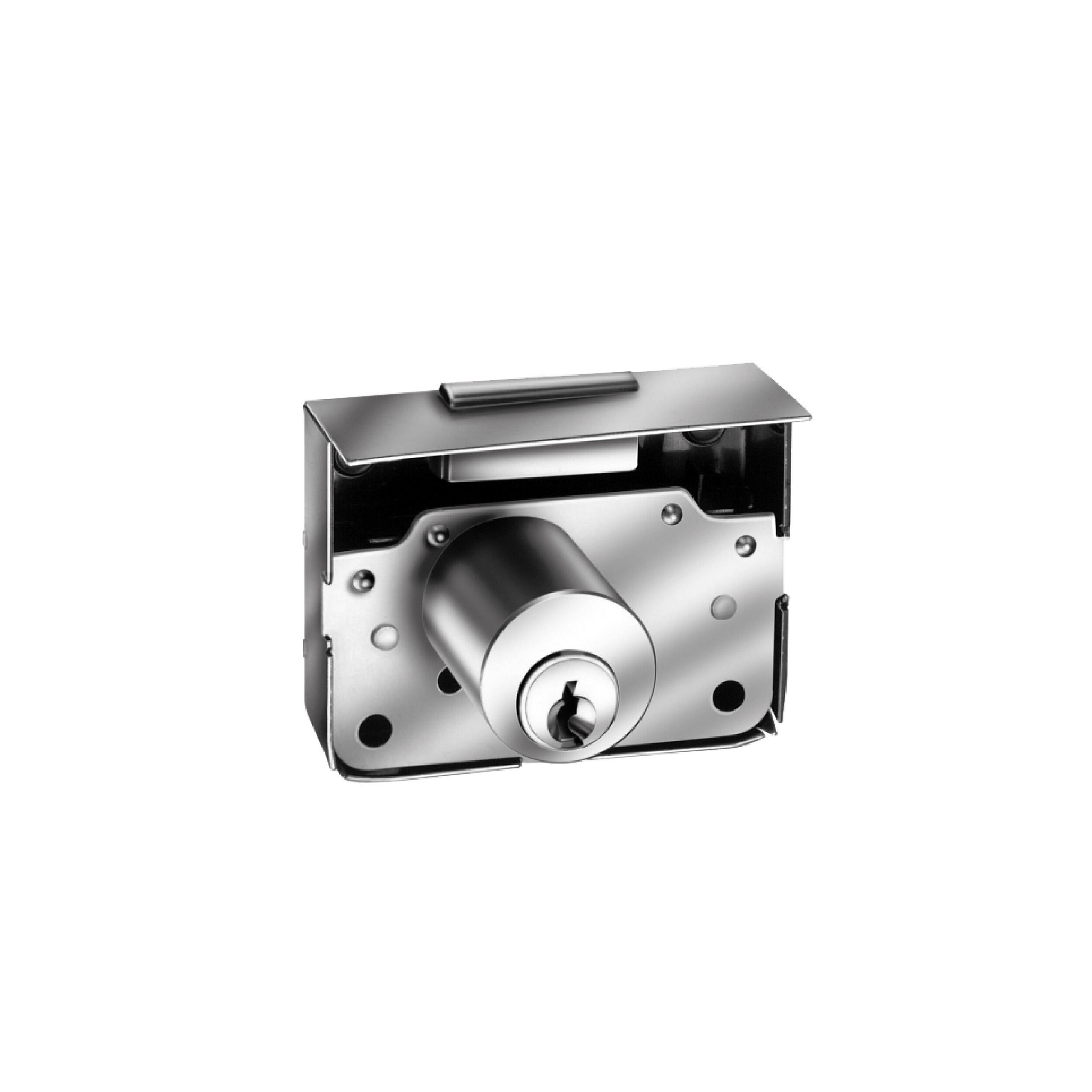 SERRATURAapplicareArt. 2203a mezza scatolacilindro a spinein ottone nichelatoper cassetto o antina - Mano - DX - Cifratura - KD - E - 25 - Chiave - Piatta - Rotazione - 360° 2 estrazione - Montaggio - Verticale/orizzontale - Lungh