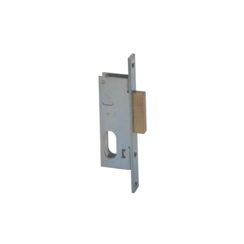 Per cilindro ovale. Chiusura con catenaccio a 1 mandata. Frontale in acciaio zincato con bordo quadro da Mm. 16x194. Altezza scatola Mm. 92. In dotazione: vite di fissaggio per cilindro.