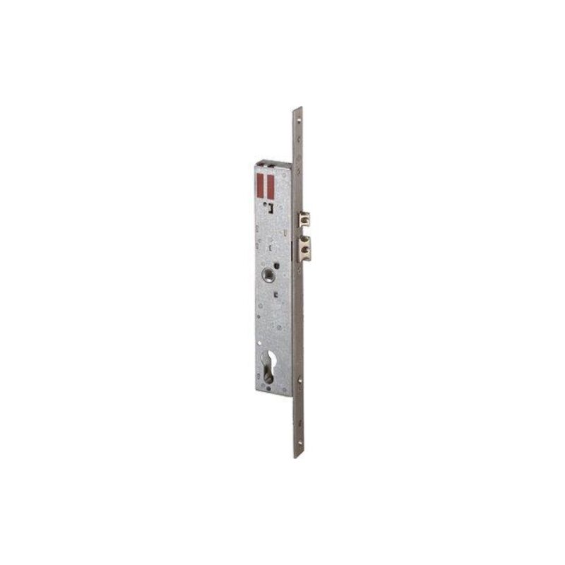 Serratura montante infilare elettrica 16205 cisa B.q inox f.mm 22 f.sagom scr+q8 e.mm 35 per cilindro sagomato. scrocco e pistone regolabili da mm. 10,5 a 16,5 elettrificati 12v. quadro maniglia mm. 8. frontale in acciaio inox con bordo quadro da mm. 22x348. altezza scatola mm. 230. in dotazione: coppia spessori sottofrontale in nylon, viti di fissaggio serratura e cilindro e coppia borchie in nylon.