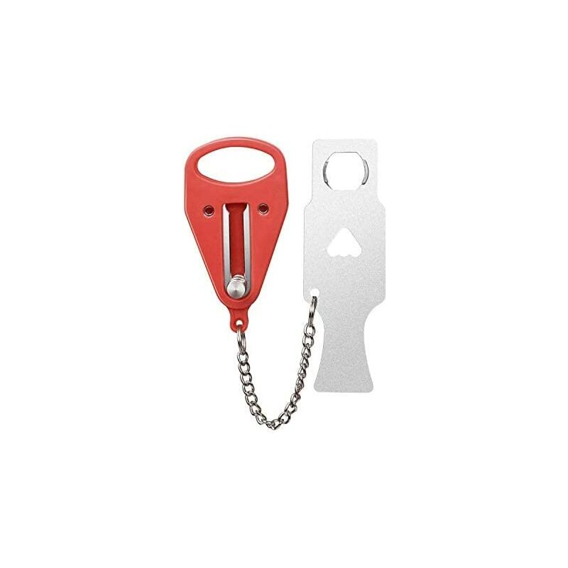 Serratura ideale per una protezione extra - Le serrature delle porte portatili aggiungono ulteriore sicurezza alla tua stanza contro l'ingresso non autorizzato, specialmente quando viaggi o soggiorni in hotel. È piccolo, ma chiuderà bene la porta. Tieni lontani quegli intrusi con un kit di blocco da viaggio premium. Aggiungi ulteriori lucchetti per maggiore sicurezza e tranquillità. 【OTTIMO PER I VIAGGI】 Abbastanza piccolo da poter essere portato in tasca o in borsa, è un dispositivo molto utile quando non sei a casa. Lascia intatta la tua dignità. Aggiungi serrature portatili per una sicurezza e una protezione efficaci in Airbnb, hotel, appartamenti, dormitori, bagni e camere da letto. 【Design facile da usare e più sicuro】 Non c'è bisogno di inchiodare o avvitare nulla, basta mettere il medaglia nel foro della porta, quindi chiudi la porta, inserisci la maniglia rossa nella serratura in cui puoi entrare e in caso di emergenza, puoi rimuovere le serrature in pochi secondi al buio!