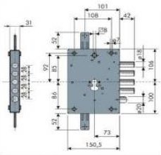 Serratura per porte blindate ad applicare con scrocco triplice ATRA DIERRE Art. SERNE42 sinistra