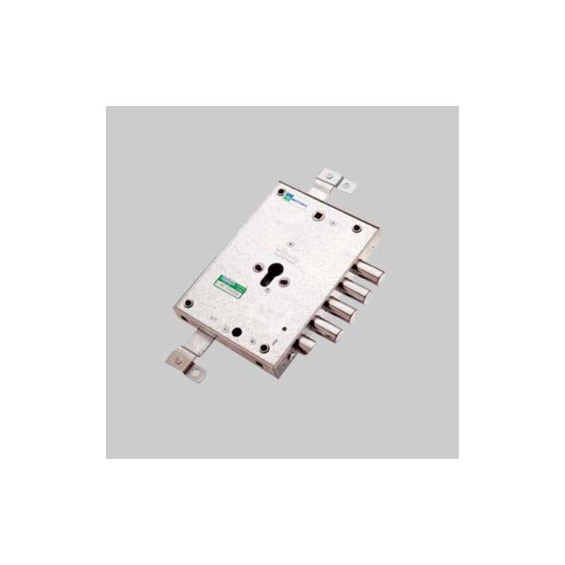 Triplice con mezzo giro reversibile 20 mm azionato da cilindro e maniglia. Doppio sistema anti-intrusione. Chiavistelli 18 corsa 29 mm. Corsa aste 20 mm. Sbalzi aste 24 mm. Interasse 28 mm. Fissaggio cilindro con vite di testa. Scatola mm 146x206. Serratura porte blindate cilindro europeo art. 89.371 mottura e73 dx MOTTURA Serrature ad applicare