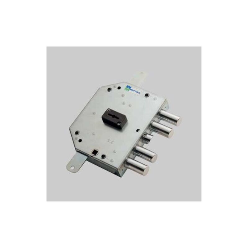 Triplice con mezzo giro reversibile, azionato da chiave e quadro maniglia mm.8. N. 4 chiavistelli tondi 19 con corsa mm.36, corsa aste mm.14. Scatola mm.132x165x35. Corredata da 3 chiavi a doppia mappa, boccola guida chiave e mostrina esterna. Serratura porte blindate a doppia mappa art. 89c755 mottura e60,5 sx MOTTURA Serrature ad applicare