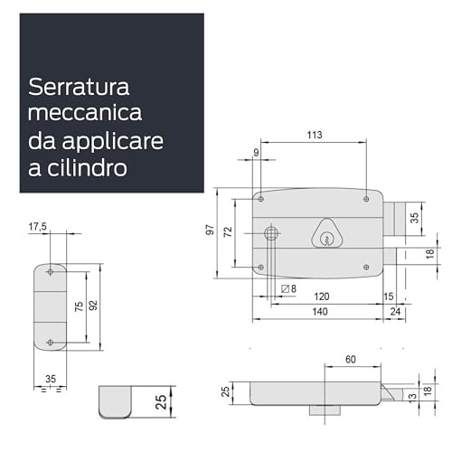 SERRATURA DA APPLICARE A CILINDRO - La serratura CISA, con corpo in acciaio e rivestimento in zinco, offre robustezza e resistenza alla corrosione. L'ideale per cancelli in ferro, con entrata da 60 mm e configurazione per mano destra