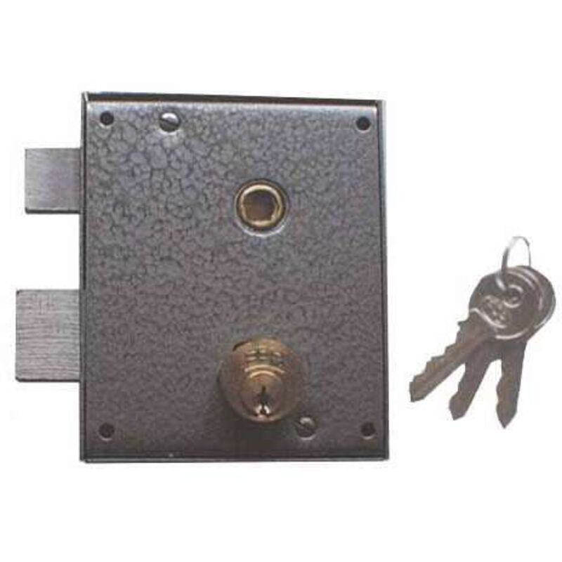 Serratura martellata grigia Applicare porte ferro Quadro maniglia mm 8 - Catenaccio 2 mandate Scatola mm 100x120 - Entrata mm 55 Cilindro corto FPB 256 - 3 chiavi
