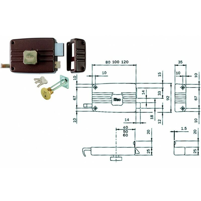SERRATURA DA PORTONCINO C/ POM. INT. CATEN. E SCR. CIL. STACC. 401/402 - mm.50 SX 2 mandate (402502) scatola e bocchetta in acciaio verniciato, serratura da applicare per porte in legno, catenaccio con pomolo interno e scrocco separato, tirante interno e richiamo con chiave esterno, cilindro staccato, dotazione: 3 chiavi
