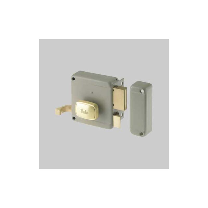 Scrocco e catenaccio. Pomolo interno, cilindro esterno staccato. 2 mandate. 3 chiavi in dotazione. Scatola mm.80x85 verniciata. Serratura portoncino art. 620 yale e40 sx YALE Serrature ad applicare