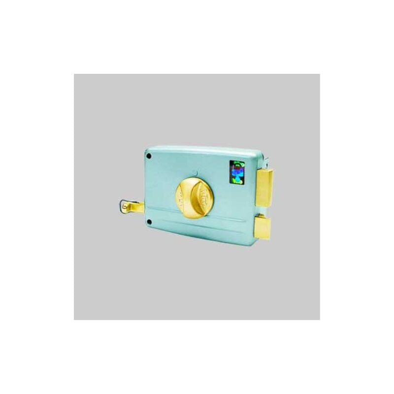 Scrocco e catenaccio. Pomolo interno, cilindro esterno staccato. 2 mandate. 3 chiavi in ottone nichelato. Serratura portoncino serie 7600 viro e60 sx - scatola 120x92 mm VIRO Serrature ad applicare