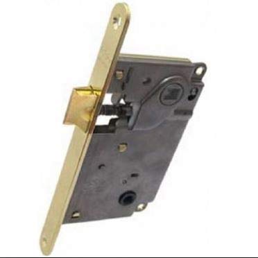 Serratura AGB serie"Centro" - solo scrocco reversibile OTTONATO VERNICIATO azionato dal quadro da mm.6. Entrata 50 - Interasse mm. 90 - Frontale mm. 22 il prezzo non include la contropiastra