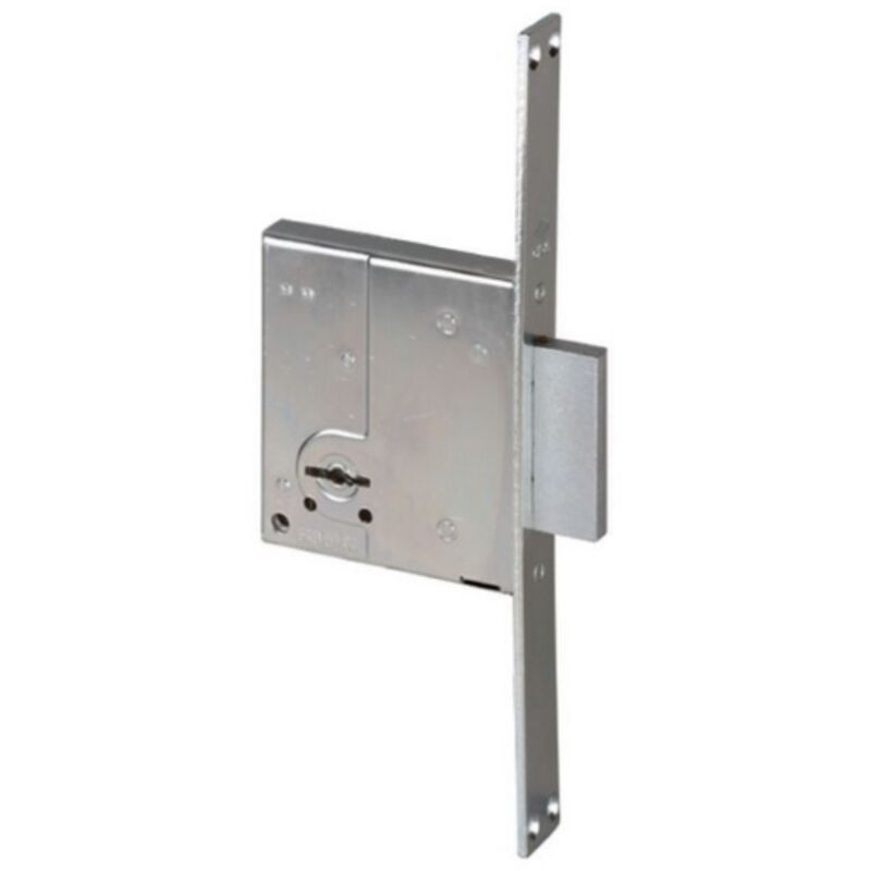 Art. 57223.60 da infilare. Scatola e frontale con rivestimento in zinco. Catenaccio in acciaio con rivestimento in zinco. Chiusura laterale con catenaccio a 2 mandate. Entrata 60 mm. Scatola 86 x h 93 mm. Frontale 22 mm. Peso 0,592 kg.