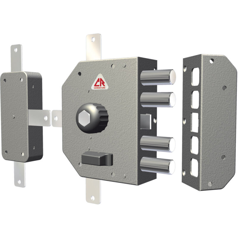 Art. 3350 con cilindro. chiusura quintupla con scrocco e 4 catenacci. Comando interno con pomolo. Mano DX Scatola verniciata mm 130x164 Entrata 60 mm