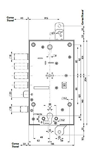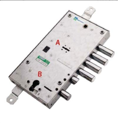 Serratura di sicurezza per porta blindata Mottura 54.597 Triplice con mezzo giro diam. 20mm chiave doppia mappa con serratura di blocco a cilindro europeo.Mano sx interasse catenacci 28 mm.