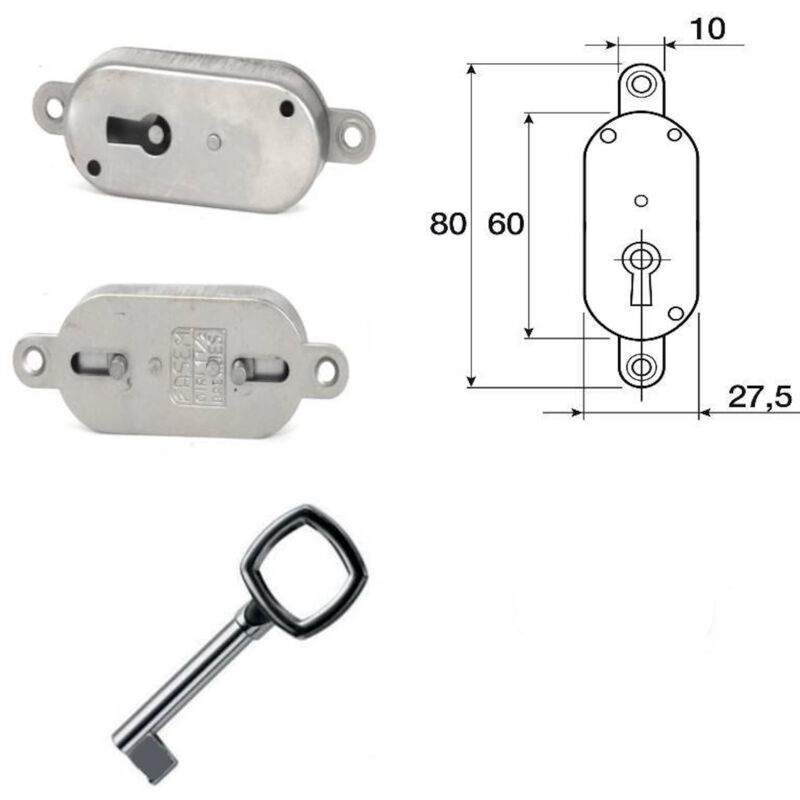 Serratura a stringa da incassare con 2 asole di fissaggio 60X26 Aste non comprese