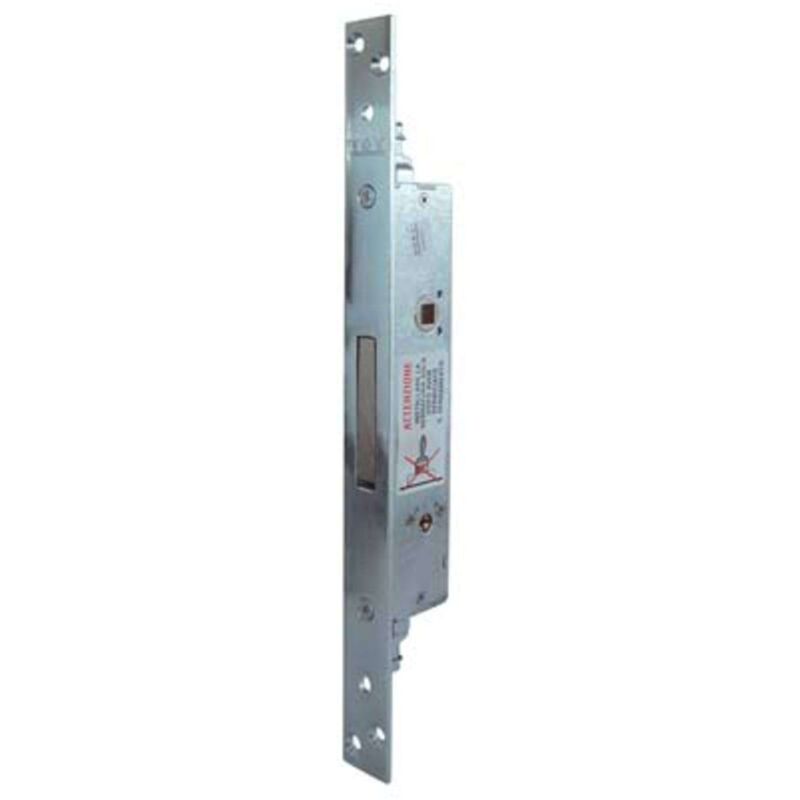 Scatola e frontale mm.25 in acciaio zincato - movimento del catenaccio comandato dalla maniglia - chiusura ad una mandata - catenaccio con blocco di sicurezza ad inserimento automatico - 2 chiavi a spillo