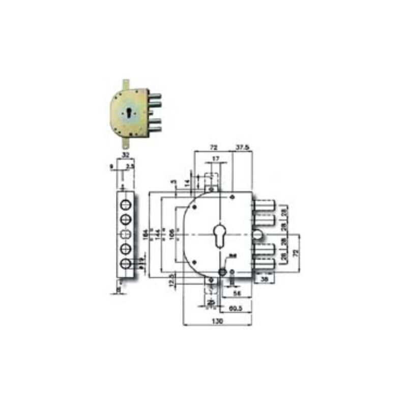 Mm.60 sx (2155pen-11) scatola in acciaio zincato, fissaggio cilindro con sistema simply, catenacci e scrocco a pistoni con interasse mm.28 in acciaio cromato, 4 mandate, quadro maniglia, funzionante con cilindro a profilo europeo non compreso, dotazione: 2 mostrine dorate, viti e minuteria, aste non comprese Categoria merceologica: Serrature, chiusure di sicurezza e accessori - Sicurezza - Serrature per porte blindate