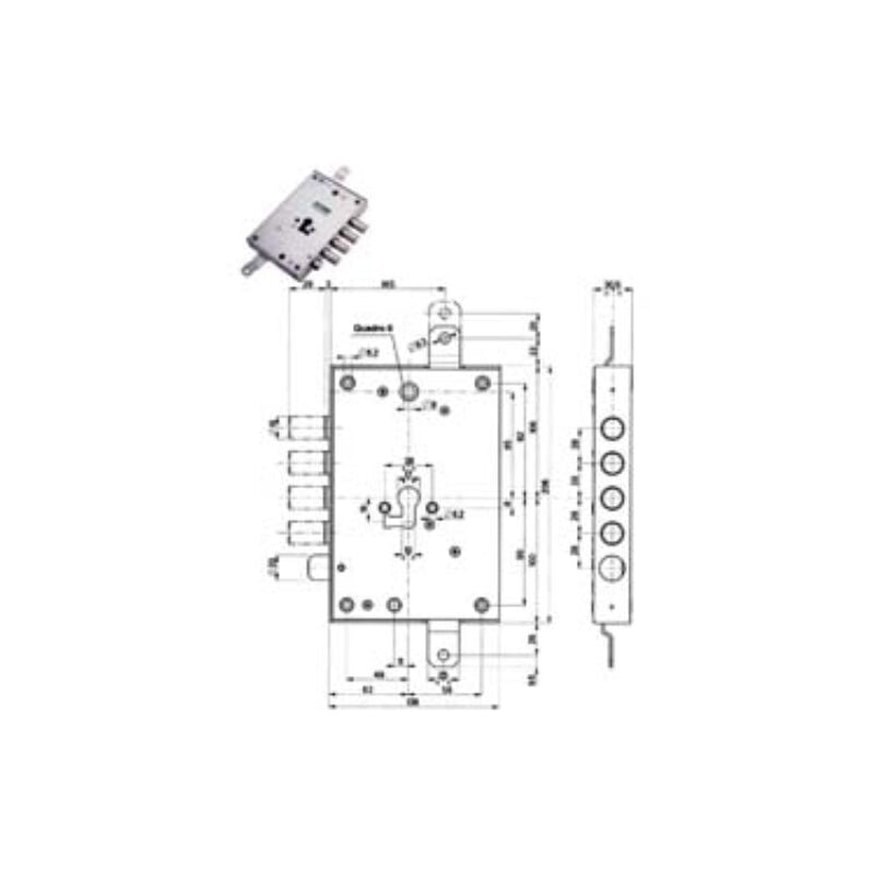Mm.63 dx (85571d28n) scatola mm.136x206h. in acciaio con rivestimento in zinco, catenacci e scrocco in acciaio nichelato, 2 mandate, quadro maniglia passante - cilindro e aste non compresi Categoria merceologica: Serrature, chiusure di sicurezza e accessori - Sicurezza - Serrature per porte blindate...