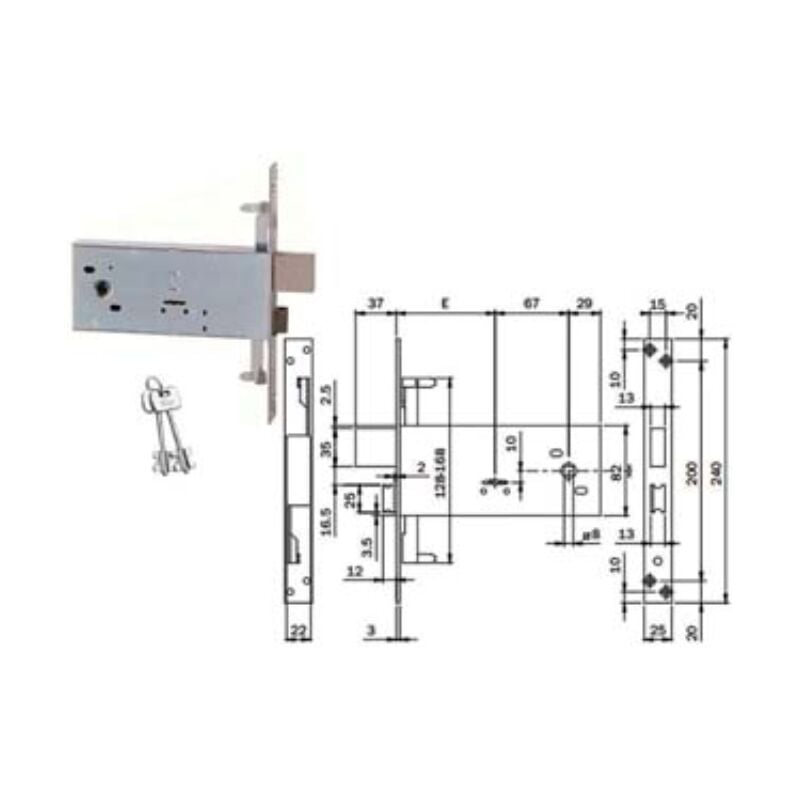 Mm.90 (983901bfz) chiusura triplice - agganci aste ad innesto - 2 chiavi da mm.79 - frontale acciaio zincato mm. 240x25x3 - altezza cassa mm.82 - quattro mandate da mm.9 - scrocco separato reversibile - richiamo scrocco con chiave o quadro maniglia mm.8 - 2 ghiere - viti di fissaggio Categoria merceologica: Serrature, chiusure di sicurezza e accessori - Sicurezza - Serrature a doppia mappa da infilare