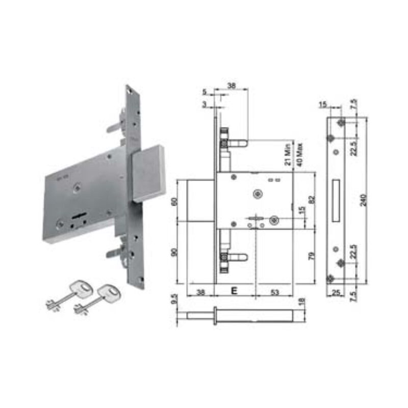 Mm.60 (y8td10146000) scatola e frontale in acciaio con rivestimento in zinco, catenaccio in acciaio zincato, 4 mandate ambidestra, dotazione 2 rosette in acciaio, boccole filettate, aste non comprese, 2 chiavi, scatola mm.82h. Categoria merceologica: Serrature, chiusure di sicurezza e accessori - Sicurezza - Serrature a doppia mappa da infilare
