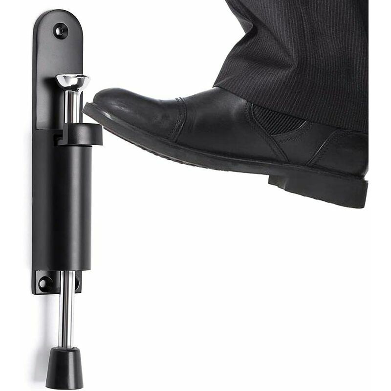 l'aspetto pulito e semplice si adatta bene a tutti i tipi di porta Supporto per porta regolabile - Design caricato a molla, adatto per la maggior parte dei tipi di porta Funzionamento a pedale - Applicazione e rilascio per mani libere Protezione in gomma - Proteggi il tuo pavimento da zero e mantieni saldamente il terreno Montato su porta - Fornito con viti di fissaggio, facile da installare Impedisci il soffio di una porta aperta nel vento in un modo più semplice ed efficace! Fermaporta a mani libere, applicazione calpestabile e rilascio per un comodo;