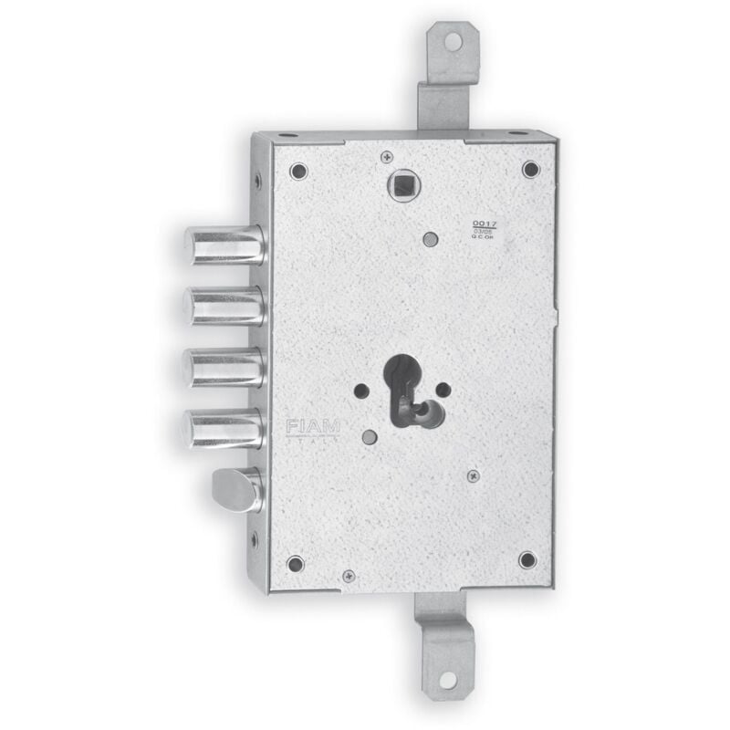 Art. 668 G chiusura triplice con 4 catenacci (corsa 30 mm) e scrocco reversibile. Interasse catenacci 28 mm Fissaggio del cilindro con viti di blocco antiscasso. Scatola mm 137x205 Compatibile con Mottura