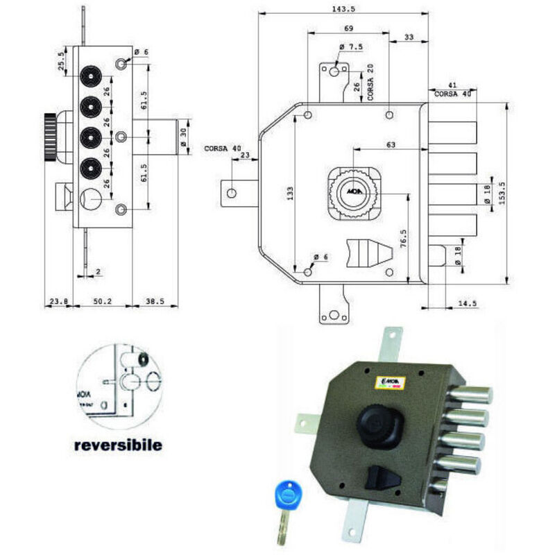 Serratura Pompa Chiave Punzonata Applicare Legno 4 Chiusure Verticali - Pomolo Interno Catenacci Laterali 4 Pistoni E Scrocco Reversibile Interasse Catenacci Mm 26 Scatola Mm 143,5X153,5X29 -. Acquistalo subito da CFadda e ricevilo comodamente a casa.