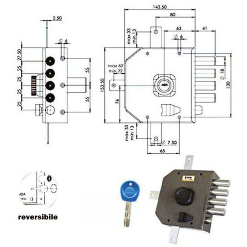 Serratura Pompa Chiave Punzonata Applicare Legno 4 Chiusure Verticali - Pomolo Interno Catenacci Laterali 4 Pistoni E Scrocco Reversibile Interasse Catenacci Mm 25 Scatola Mm 143,5X153,5X29 -. Acquistalo subito da CFadda e ricevilo comodamente a casa.