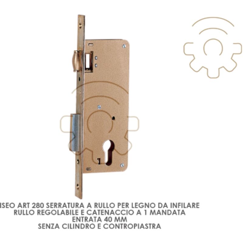 1,0 PZ Di ISEO 280.40.1 SERRATURA A RULLO REG 2 MAND S/CILIN Art. 280N da infilare catenaccio a 2 mandate e rullo regolabile. Entrata 40 mm