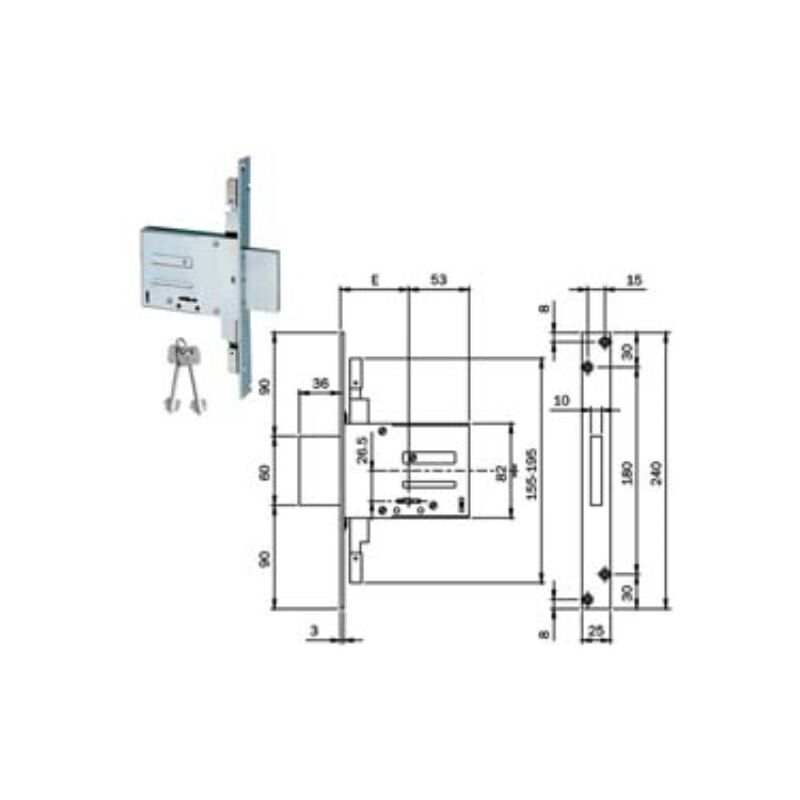Mm.60 (663301604) chiusura triplice - raccordo per aggancio aste m8 premontato - doppia mappa - scatola zincata -frontale zincato mm.240x25x23 - catenaccio rettangolare a 4 mandate mm.9 - 2 chiavi Categoria merceologica: Serrature, chiusure di sicurezza e accessori - Sicurezza - Serrature a doppia mappa da infilare