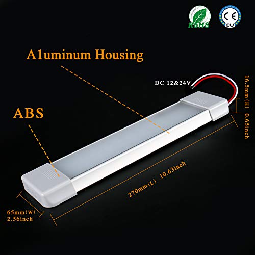 Materiale: questa luce per camper è realizzata in alluminio, resistente ma leggera. Lo schermo è realizzato in acrilico ad alta trasmissione della luce con alta luminosità. Consiste di 36 2835 perline LED, che sono a risparmio energetico e luminose.