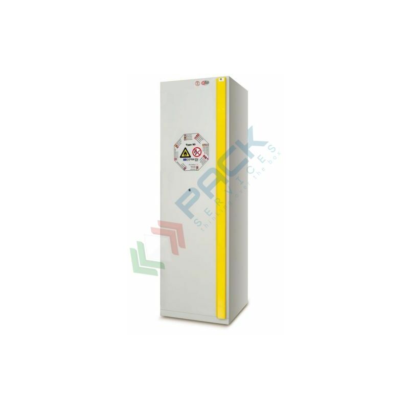 ARMADI DI SICUREZZA PER LO STOCCAGGIO DI PRODOTTI INFIAMMABILI Certificati secondo le norme EN14470-1 Type 90 e EN 16121 Armadio di sicurezza per lo stoccaggio di prodotti infiammabili realizzato in lamiera di acciaio elettrogalvanizzata dello spessore di 1 - 1,5 mm, piegata a freddo, Mis. esterna 595 L x 600 P x 2050 H mm, Mis. interna 496 L x 446 P x 1540 H mm, chiusura automatica delle ante quando la temperatura ambiente supera i 50 °C. L'armadio di sicurezza per infiammabili è certificato secondo le norme EN14470-1 e EN16121, garantisce resistenza al fuoco certificata 90 min. Armadio con 3 ripiani in acciaio verniciato (carico max 60 Kg distribuiti uniformemente) + 1 vasca con griglia (capacità 20 litri), capacità di stoccaggio 80/100 bottiglie da 1 Litro per armadio, apertura dell'anta ad incavo a sinistra. Colore grigio. Caratteristiche tecniche: Misura esterna: 595 L x 600 P x 2050 H mm Mis. interna: 496 L x 446 P x 1540 H mm Accessori in dotazione: 3 ripiani in acciaio