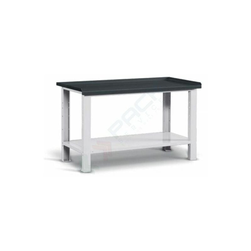 Banco da lavoro in acciaio, realizzato con piano in acciaio 3 mm, Mis. 1507 L x 705 P x 855 H mm, con piano inferiore regolabile in altezza. Colore antracite RAL 7016 + grigio RAL 7035. Portata 1000 Kg. Fornito montato.