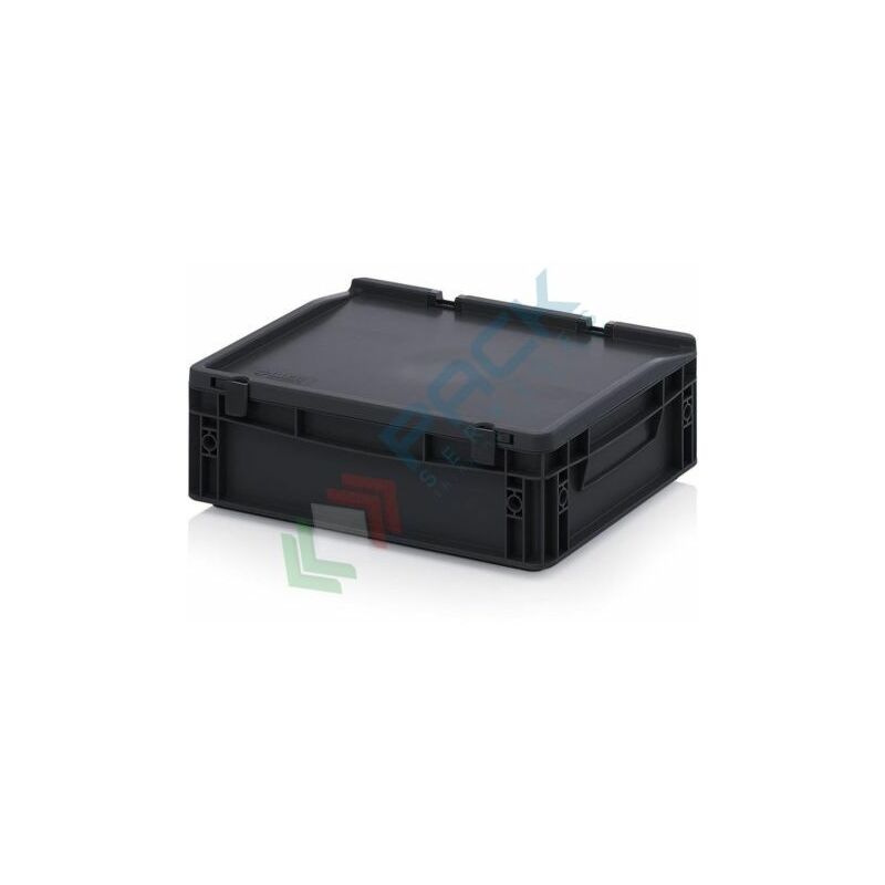 CASSETTA IN PLASTICA ANTISTATICA E CONDUTTIVA Contenitore in plastica, conduttivo e antistatico, capacità 10 Lt, Mis. esterne 400 L x 300 P x 135 H mm, Mis. interne 370 L x 270 P x 105 H mm. Cassetta in plastica sovrapponibile, norma Europa, con coperchio integrato. La cassa in plastica, il coperchio e la cerniera sono realizzati in materiale sintetico conduttivo, quindi adatti per l'immagazzinaggio e il trasporto in sicurezza di merce elettronica. Cassetta di plastica impilabile anche con coperchio, robusta e fornita in tutti i formati Euro attuali. Il coperchio è incluso e fornisce maggiore protezione al contenuto. Base e pareti chiuse, maniglie chiuse. Cassetta conduttiva e antistatica in polipropilene (PP), NON idonea al contatto alimentare. Con l'utilizzo di contenitori antistatici si evitano cariche elettrostatiche;