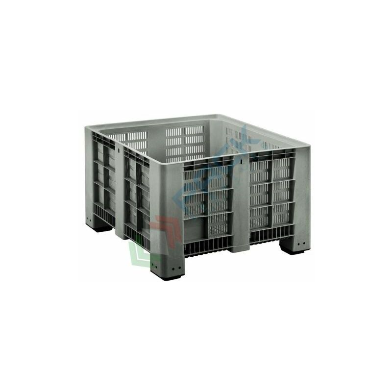 CASSA PALLET IN PLASTICA MIS. 1130 L x 1130 P mm Cassone in plastica (HDPE) 4 piedi, volume 650 litri, Mis. esterne 1130 L x 1130 P x 760 H mm, Mis. interne 1040 L x 1040 P x 600 H mm, portata unitaria 450 Kg. Intervallo di utilizzo -20°/+40 °C. Contenitore in plastica accatastabile/sovrapponibile, con base e pareti forate. Bin in plastica realizzato in materiale completamente riciclabile, di prima fusione garantito e certificato, non soggetto a variazioni di peso a contatto con l'acqua. Facilmente lavabile ed inattaccabile dalla ruggine. Cassa pallet che trova applicazione nei più svariati settori, strutturata in maniera da essere impilabile, per agevolare le operazioni di stoccaggio e di movimentazione e le operazioni di raccolta, trasporto, stoccaggio, movimentazione e frigo-conservazione. Cassone in HDPE resistente ai raggi U.V. ed infrarossi, alle alte e alla basse temperature. No predisposizione per tappo di scarico e rubinetto. Idonea al contatto con alimenti. Colore grigio.