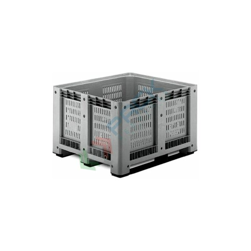 CASSA PALLET IN PLASTICA MIS. 1200 L x 1000 P MM Cassone in plastica (HDPE) 3 traverse, volume 610 litri, Mis. esterne 1200 L x 1000 P x 760 H mm, Mis. interne 1120 L x 920 P x 600 H mm, portata unitaria 510 Kg. Intervallo di utilizzo -20°/+40 °C. Contenitore in plastica accatastabile/sovrapponibile, con base e pareti forate. Bin in plastica realizzato in materiale completamente riciclabile, di prima fusione garantito e certificato, non soggetto a variazioni di peso a contatto con l'acqua. Facilmente lavabile ed inattaccabile dalla ruggine. Cassa pallet che trova applicazione nei più svariati settori, strutturata in maniera da essere impilabile, per agevolare le operazioni di stoccaggio e di movimentazione e le operazioni di raccolta, trasporto, stoccaggio, movimentazione e frigo-conservazione. Cassone in HDPE resistente ai raggi U.V. ed infrarossi, alle alte e alla basse temperature. No predisposizione per tappo di scarico e rubinetto. Idonea al contatto con alimenti. Bins utilizzato