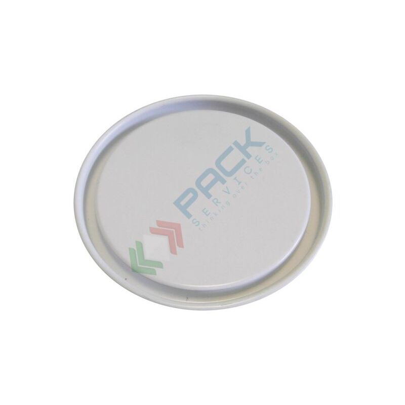 Coperchio a pressione per barattolo in metallo con diametro 73 mm. Colore esterno bianco e interno grezzo.