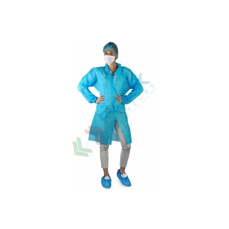 KIT MONOUSO PER VISITATORE, CONF. 50 PZ Set usa e getta da visitatore, composto da 1 camice monouso in TNT (30gr/m2) chiusura con velcro e tasca interna, cuffietta monouso in TNT (14 gr/m2), mascherina monouso in cellulosa a 2 veli, copribarba monouso in TNT e copriscarpa monouso in CPE goffrato. Il kit monouso è composto da dispositivi di Protezione Individuale (D.P.I) di I categoria, solo per rischi minimi. Kit monouso visitatore consigliato per l'industria alimentare, laboratori e in ambito medicale. Prodotto unisex, ideale sia per uomo che per donna. Abbigliamento monouso non sterile adatto ai visitatori, per rispettare le regole di igiene e da utilizzarsi sopra all'abbigliamento. Imbustato singolarmente. Confezione da 50 pezzi. Kit composto da: Camice in TNT (30 gr/mq) azzurro chiusura con velcro, tasca interna Cuffietta a Zig Zag (14 gr/mq) azzurra Mascherina in cellulosa bianca a 2 veli Copribarba in TNT Copriscarpa in CPE blu goffrato Caratteristiche tecniche: Colore azzzurro