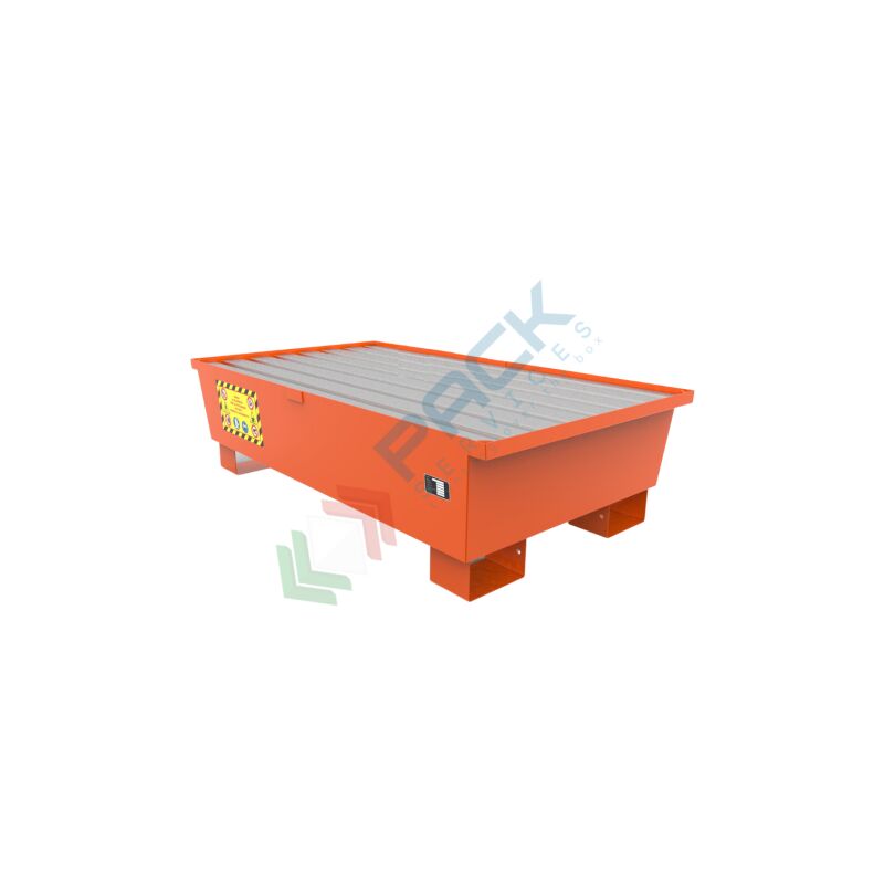Vasca di raccolta liquidi in acciaio, ideale per lo stoccaggio in sicurezza di 2 cisterne IBC 1000 Lt da posizionare direttamente su grigliato in lamiera facilmente smontabile con elevata resistenza a flessione grazie al profilo grecato. Vasca di contenimento liquidi con Mis. 2673 L x 1325 P x 460 H mm, volume di raccolta 1050 Lt, portata ripiano 2000 Kg, realizzata in acciaio al carbonio verniciato, obbligatoria come previsto dal D. Lgs. N.81/2008 che prevede l'utilizzo di una vasca raccolta liquidi se stoccati liquidi infiammabili o inquinanti. Grazie ai piedini d'appoggio, la vasca di contenimento può essere movimentata all'interno di aree di lavoro con transpallet o muletti con la massima facilità. Flusso liquido garantito in maniera efficiente verso linterno vasca, tramite i canali di scolo laterali al ripiano di appoggio. Impilaggio delle vasche per unottimizzazione del trasporto. Vasca di sicurezza che permette di collocare il supporto inclinato Cod. Art. SP-IBC per realizzare