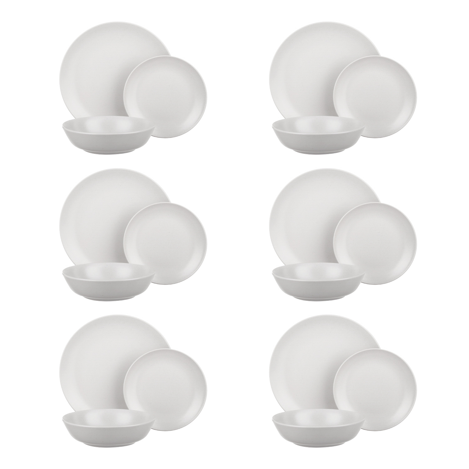 In cerca di un servizio di piatti moderni e in resistente ceramica? Lo hai trovato! Questo set piatti è caratterizzato da 18 pezzi in ceramica stoneware di un neutro e intramontabile color grigio chiaro. Porterà sulla tua tavola di ogni giorno dettagli essenziali, belli e funzionali per pranzare in 6 persone. Il set piatti colorato si compone di piatto piano diametro 27 cm, piatto fondo 20,5 cm e piatto frutta o dessert diametro 19,5 cm. I piatti sono adatti all'uso nel microonde e lavabili in lavastoviglie.