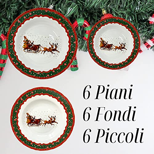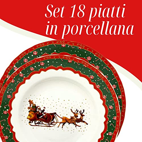 Servizio Piatti Natalizi 18 Pezzi, 6 Fondi 6 Piani 6 Piccoli, Piatti Moderni in Porcellana Pregiata, Set Piatti 6 Persone Per Lavastoviglie, Articoli Natalizi (Piatti Natalizi Slitta)