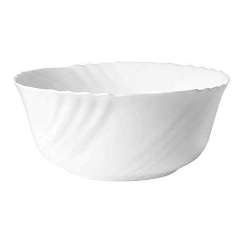 Servizio di piatti dalla forma rotonda, colore bianco, 19 pezzi: 1 insalatiera, 6 piatti da dessert, 6 piatti fondi, 6 piatti piani.