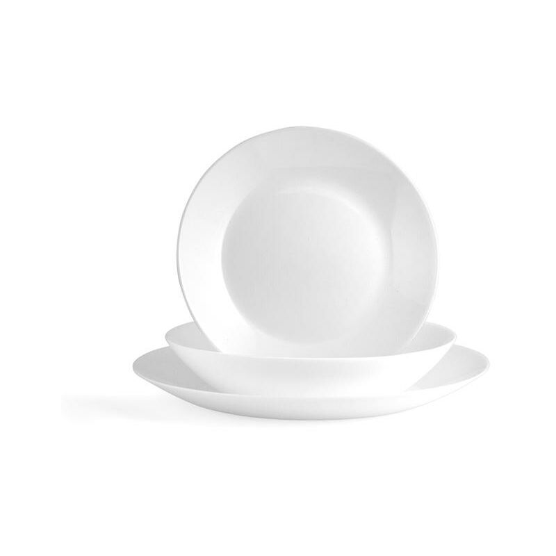 Servizio tavola 18 pezzi Zelie in vetro opale bianco. composto da: 6 piatti piani cm 25x2,5 h